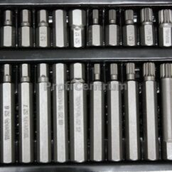Profesjonalny zestaw bitów, służący do odkręcania śrub specjalnych typu: torx, spline, hex. Wykonany z najwyższej jakości stali stopowej narzędziowej S2, która charakteryzuje się wysoką twardością HRC 58-62, jednolitą, drobnoziarnistą strukturą materiału, odpornością na skręcanie, wysokim momentem dokręcania – 21,8 Nm, doskonałym zahartowaniem. Różnorodność bitów zapewnia możliwość wykonania wielu prac w specjalistycznych serwisach mechanicznych i samochodowych.Zawartość…
