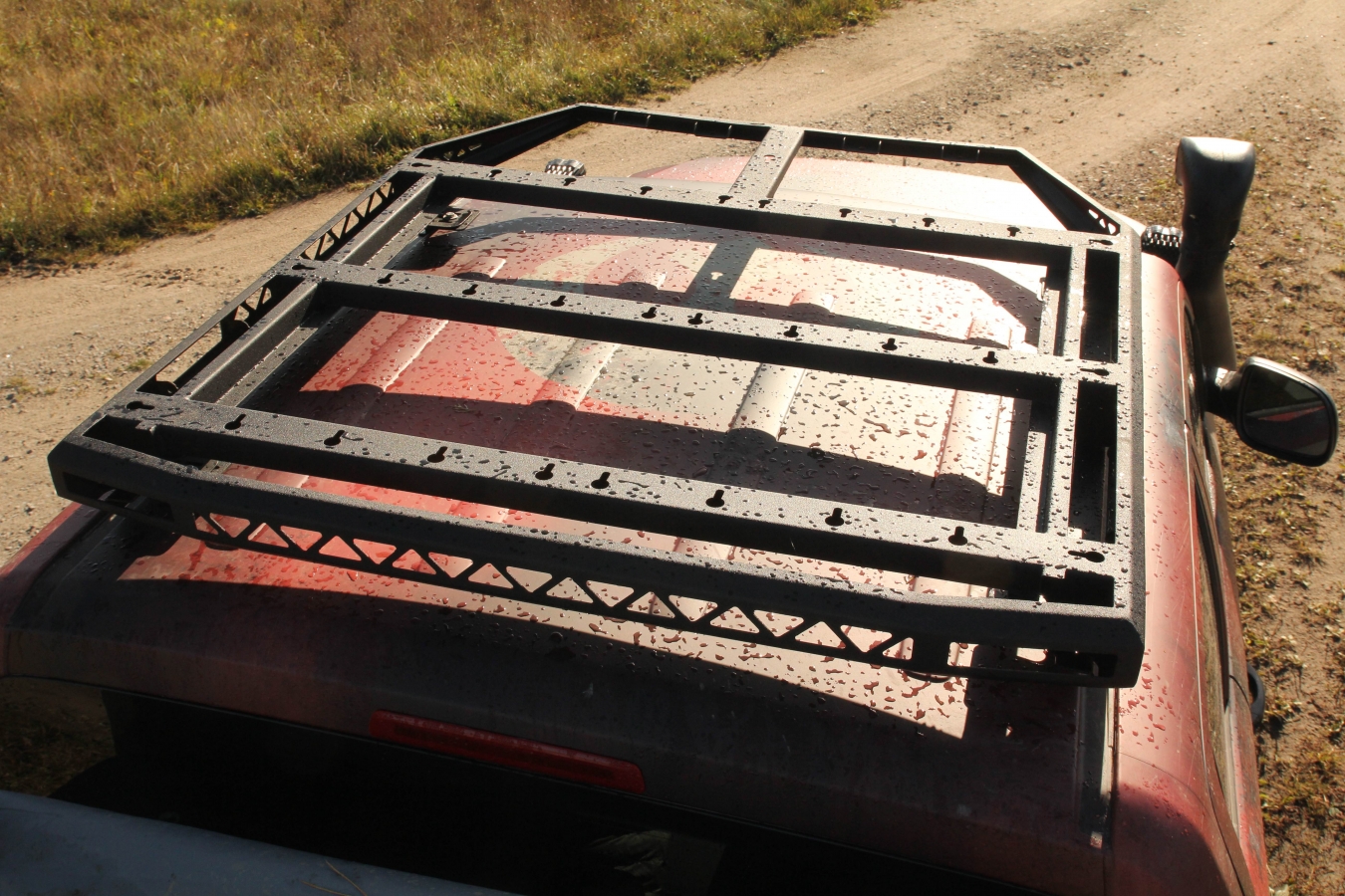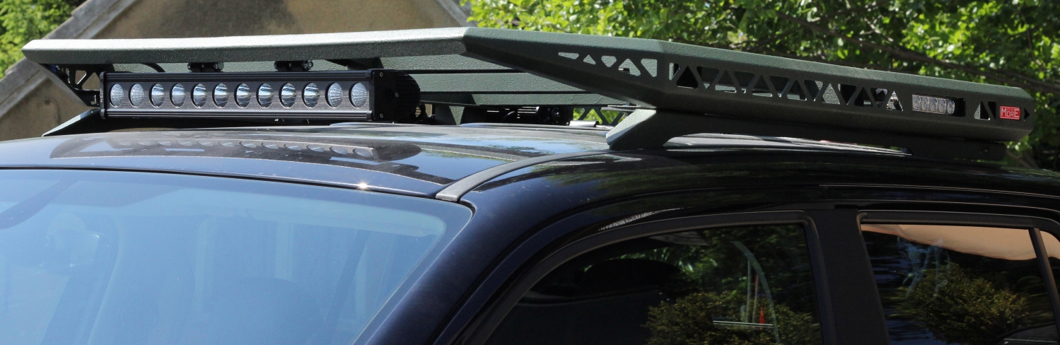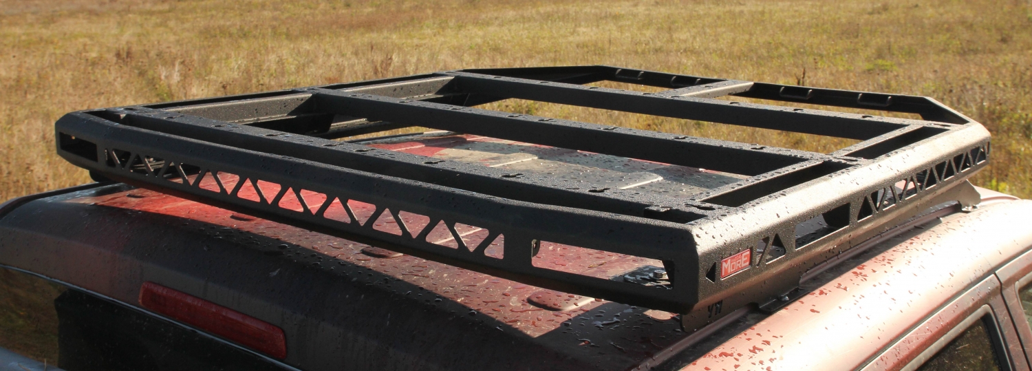Przestrzenna konstrukcja stalowa bagażników dachowych MorE 4×4 oprócz wartości estetycznych nadaje lekkiej konstrukcji odpowiednią wytrzymałość niezbędną w trudnym terenie.