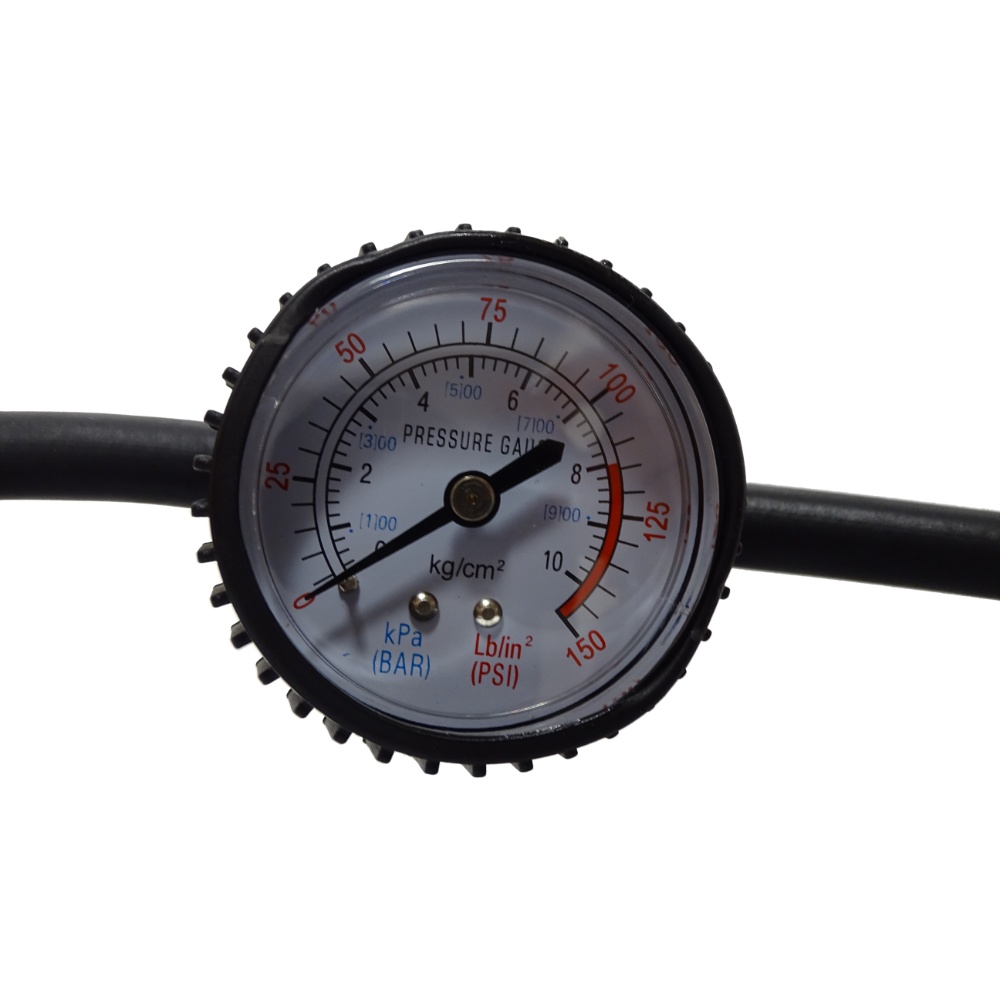 Do kół o dużej średnicy, dzięki dużej wydolności bez problemu napompuje oponę pow. 33″