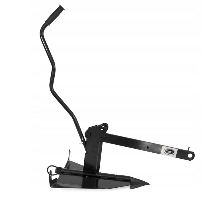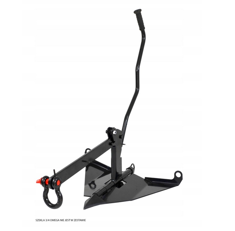 Kotwica posiada trzy różne nastawy kąta natarcia dla używania w: drobnym piasku, grubym żwirze i ziemi. Wykonana ze stali.