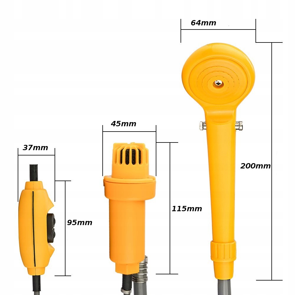 Nasz prysznic 12V jest idealnym rozwiązaniem dla wszystkich, którzy cenią sobie wygodę i funkcjonalność w trakcie podróży. Wyposażony w wydajną pompkę o średnicy 45 mm z praktycznym wyłącznikiem on/off, zapewnia łatwą obsługę i kontrolę nad strumieniem wody. Dzięki regulacji przepływu wody w prysznicu 12V, możesz dostosować siłę strumienia do swoich potrzeb, co jest szczególnie przydatne przy różnych zastosowaniach – od mycia samochodu po higienę osobistą. Kabel zasilający o długości 4 m oraz wąż gumowy o długości 2 m dają dużą swobodę i umożliwiają używanie prysznica 12V w komfortowych warunkach, niezależnie od lokalizacji. Mocna i wytrzymała konstrukcja zapewnia długie lata użytkowania, co czyni go niezastąpionym akcesorium w każdym kamperze, przyczepie campingowej czy łodzi.
