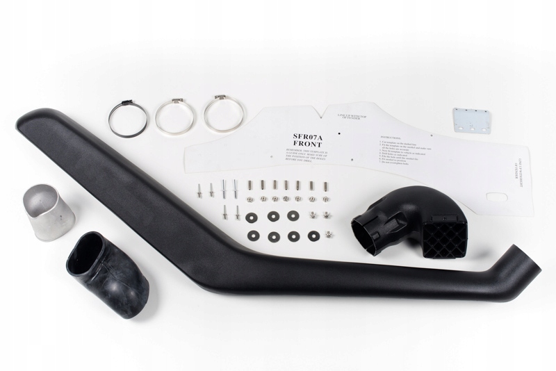 Snorkel z nakładką, adaptery-przyłącza i elementy mocujące (śruby, nity, zaciski).