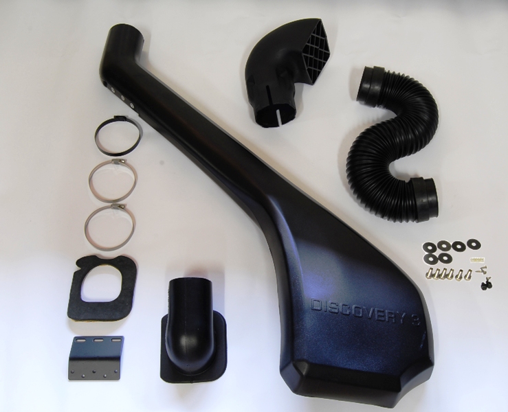 Snorkel z nakładką, adaptery-przyłącza i elementy mocujące (śruby, nity, zaciski).