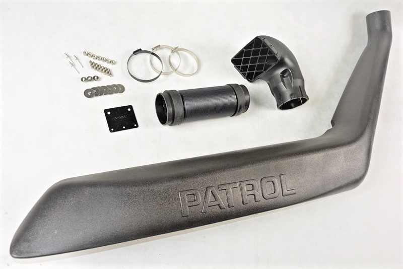 Snorkel z nakładką, adaptery-przyłącza i elementy mocujące (śruby, nity, zaciski).