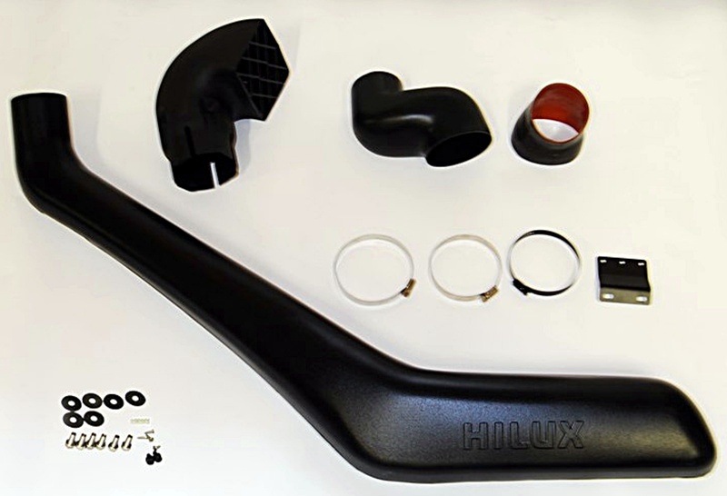 Snorkel z nakładką, adaptery-przyłącza i elementy mocujące (śruby, nity, zaciski).