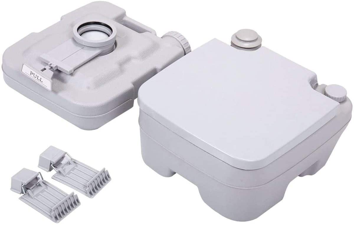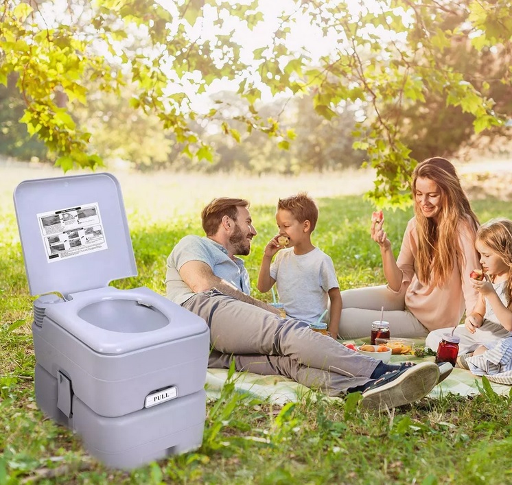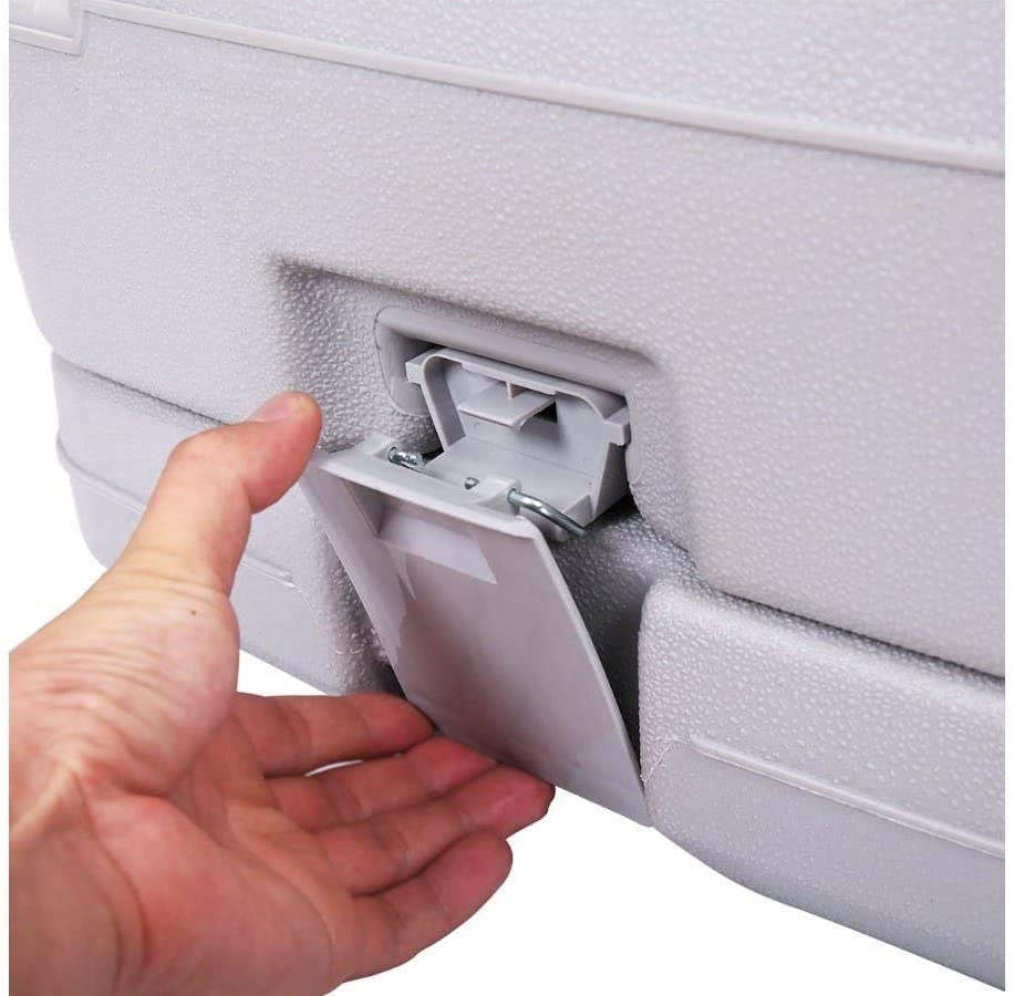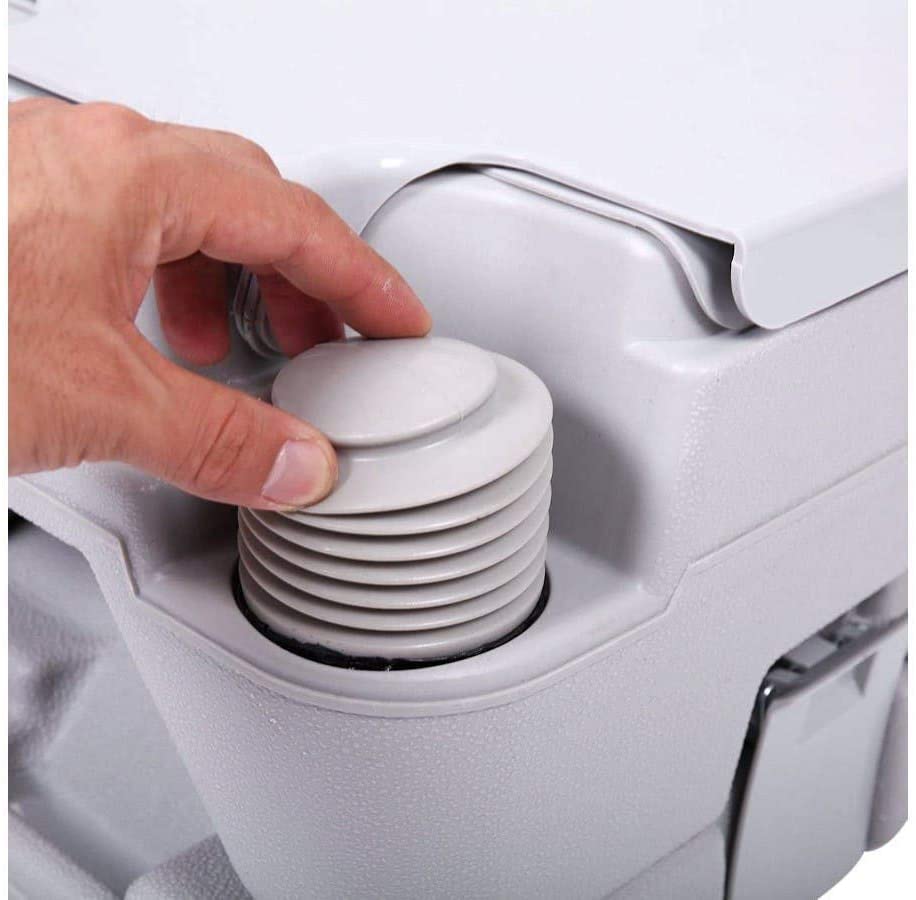 Toalety kempingowe można odłączyć za pomocą dwóch bocznych zatrzasków, aby wlać ścieki, a także solidnie mocuje dolną część, aby zapewnić stabilność podczas użytkowania. Posiada zawór suwakowy na toalecie do zamykania odpadów, aby zapobiec przed wyciekiem i specyficznym zapachem, gdy nie jest używany.