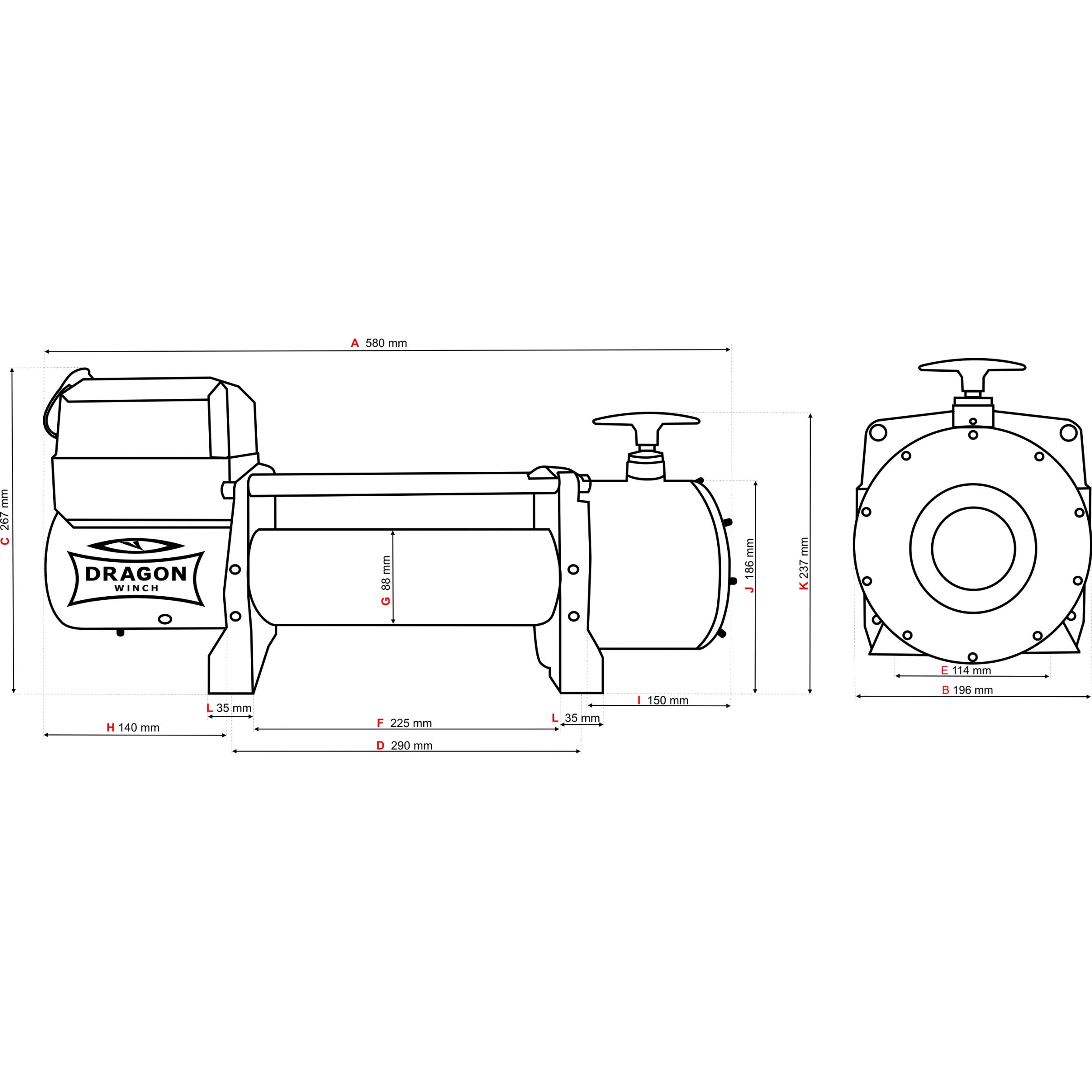 | Wymiary wyciągarki (LxWxH): | 580 mm x 196 mm x 267 mm |