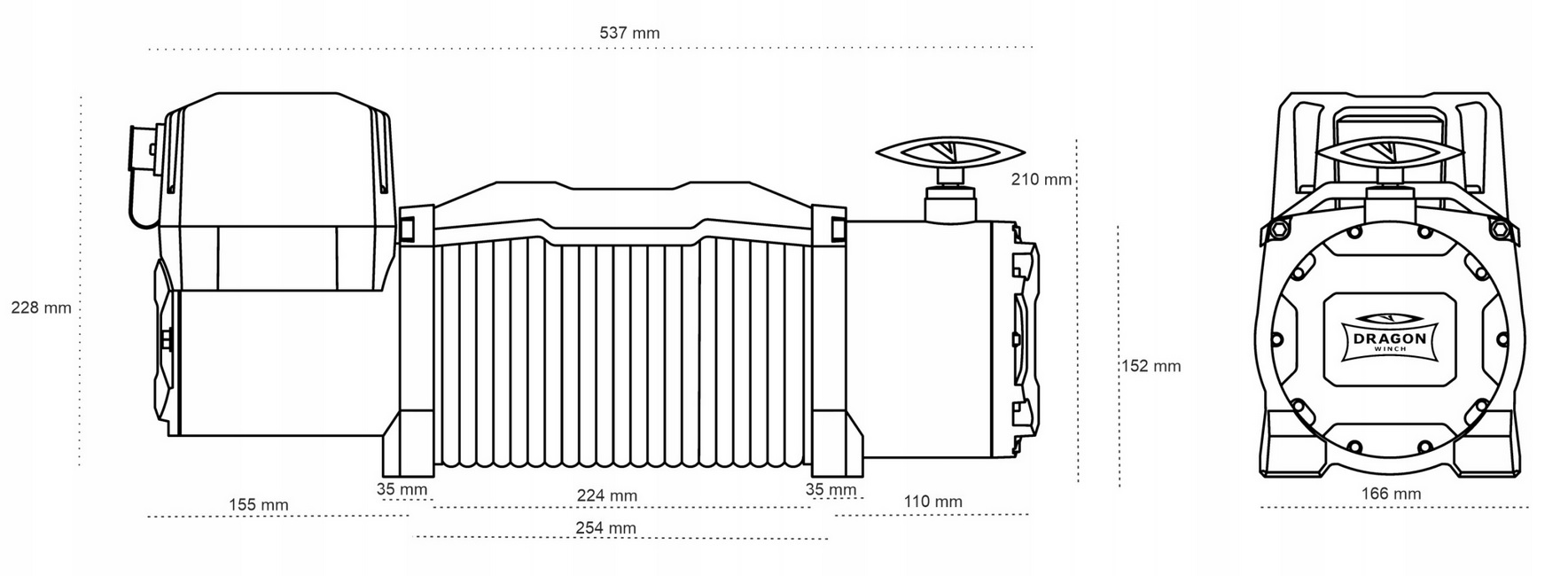 - Wymiary wyciągarki (LxWxH): 537 mm x 166 mm x 228