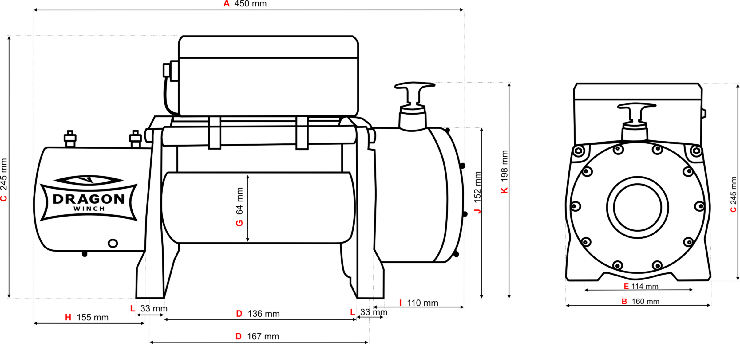 | Wymiary wyciągarki (LxWxH): | 450 mm x 160 mm x 245 mm |