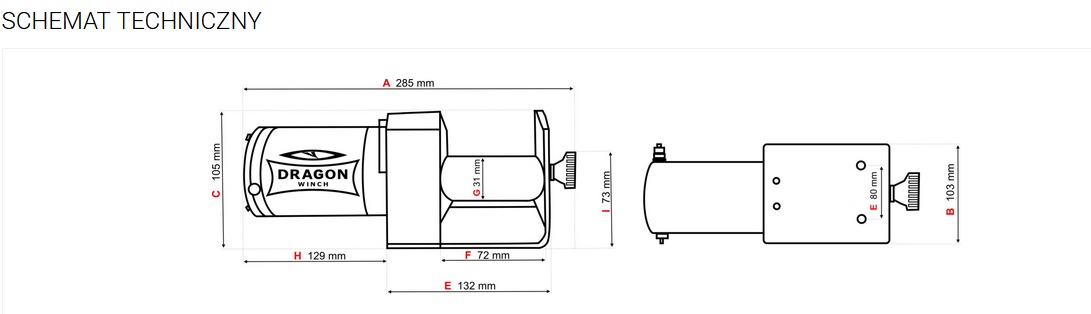 - Wymiary wyciągarki (LxWxH): 280 mm x 100 mm x 110 mm