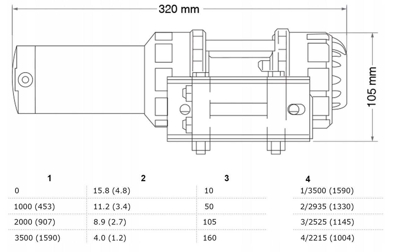 - Rozmiar wyciągarki: 338 mm x 120 mm x 117 mm