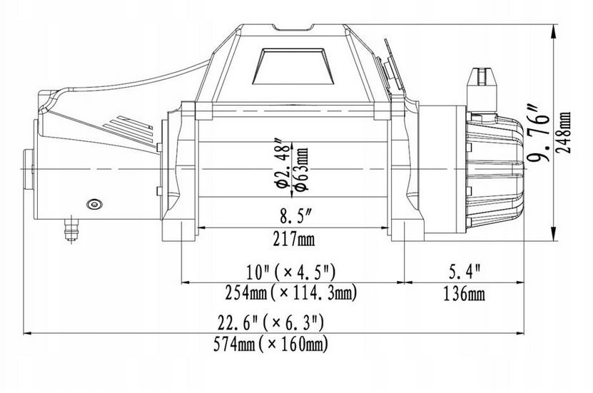 - Rozmiar wyciągarki: 574mm x 160mm x 248mm