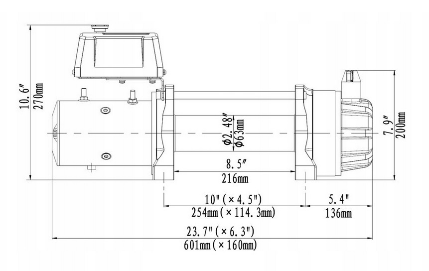 - Rozmiar wyciągarki: 601mm x 160mm x 270mm