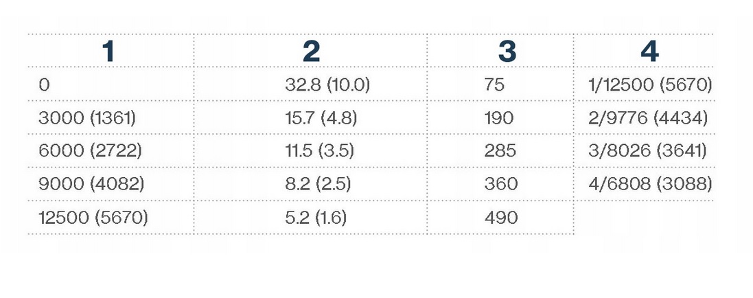 - Szybkość zwijania liny FT/min (M/min)