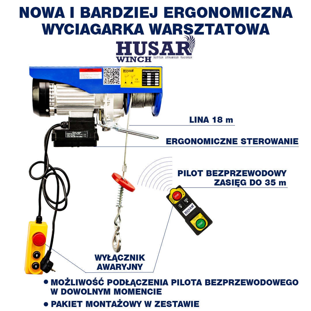 Wyciągarka warsztatowa 300kg z pilotem bezprzewodowym Husar Winch